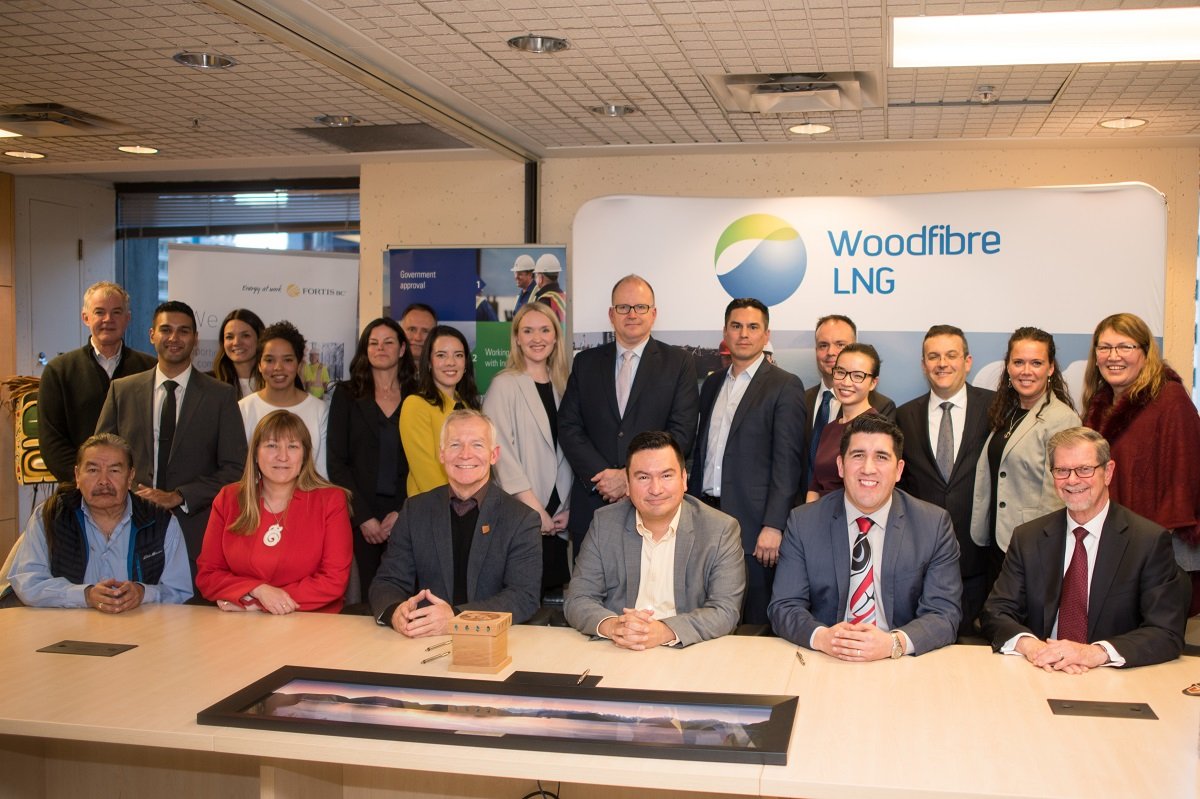 Representatives from Woodfibre LNG, Fortis BC, British Columbia government and Squamish Nation at the IBA signing ceremony in February 2019