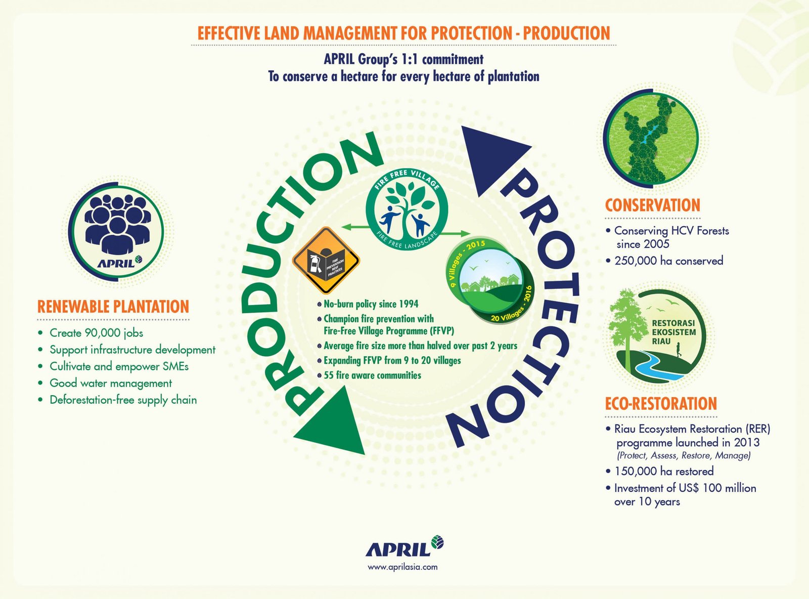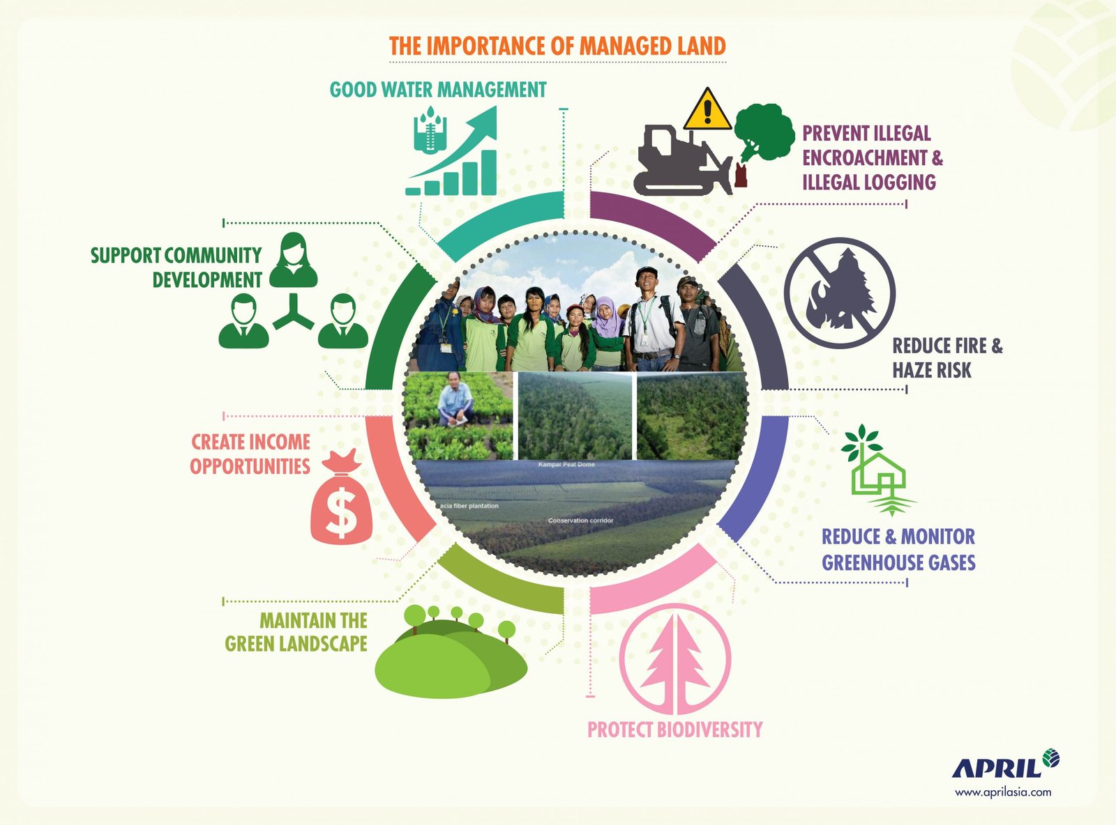 APRIL Group’s landscape approach is buttressed by a spectrum of commitments aimed to holistically address issues at the levels of environment, community, government, business, and economy. The company recognises that these interdependent spheres can collectively contribute to well-managed lands.